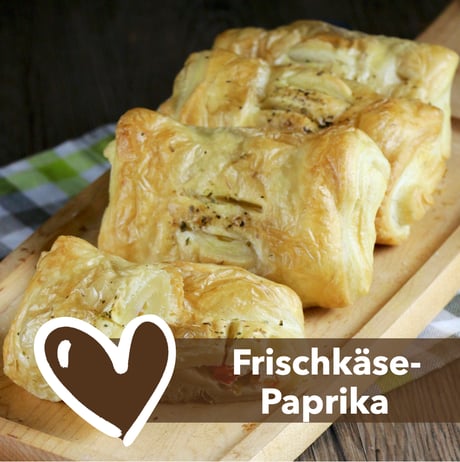 Unser vegetarischen Taschen backen wir aus unserem handgerollten Blätterteig. Das Innere füllen wir mit cremigen Frischkäsezubereitung kombiniert und rotem und grünem Paprika und verfeinert mit besten Gewürzen. Fertig ist ein vegetarische, kleiner Leckerbissen.