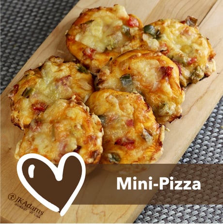 Grundlage ist natürlich unser bester Bäcker-Pizza-Teig. Reichlich saftig gefüllt mit einer Tomaten-Pizzasauce, natürlich verfeinert mit Oregano. Unser Belag aus Salamiwürfeln, Paprika und Zwiebeln wird bestreut mit bestem Gouda-Käse. Fertig ist unsere Mini-Bäcker-Pizza.