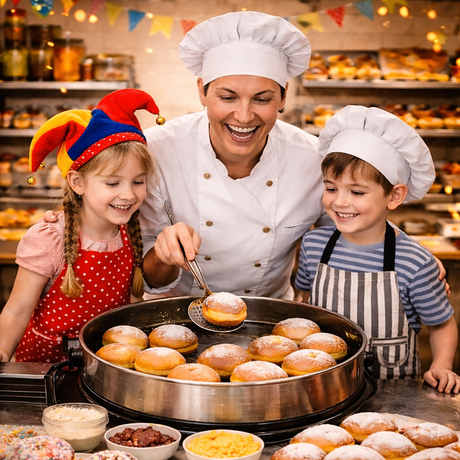 seid dabei, wenn wir für euch unsere Backstube öffnen! Gemeinsam mit unserem Chef Christian und den Nachwuchsbäckern Laura und Simon erlebt ihr ein lustiges und kreatives Krapfen-Event.