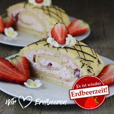 Saftiger Biskuitboden mit einer fruchtigen Füllung von verführerischer Erdbeersahne von Hand zur Roulade gerollt. Garniert mit einer lockeren Sahnehaube, frischen Erdbeerhälften und einer zartschmelzenden Schokoladenglasur. Ein durch und durch erfrischend-erdbeeriger Genuss.