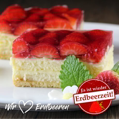Für eine so leckere Schnitte legen unsere Bäcker & Konditoren nur beste Zutaten auf das Kuchenblech. Einzeln gebackene, lockere Biskuitböden und knuspriger Mürbteig bilden die Basis für unsere Lecker-Schnitte. Gefüllt mit einem leichten Vanillepudding und gedeckt mit reichlich erntefrischen Erdbeeren aus der Region werden sie so richtig unwiderstehlich. Ein dünner Überzug aus Gelee vollendet die Schnitte.